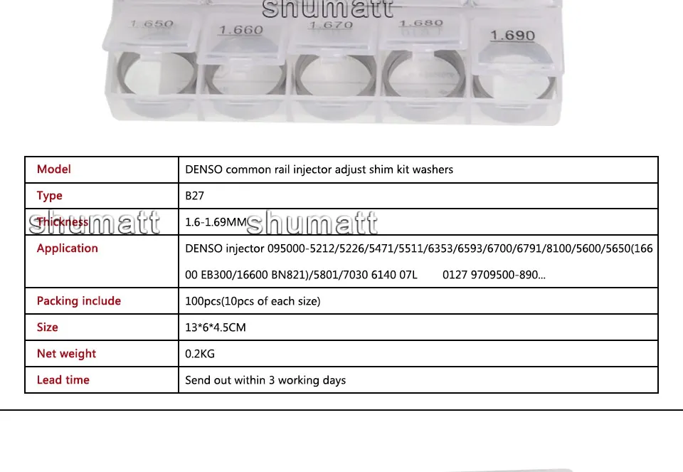 SHUMAT 100PCS Common Rail B27 Fuel Injector Assy Adjusting Washer Shim 1.6-1.69 mm for DEN-S0 095000-5212 5226 5471 5511 6353